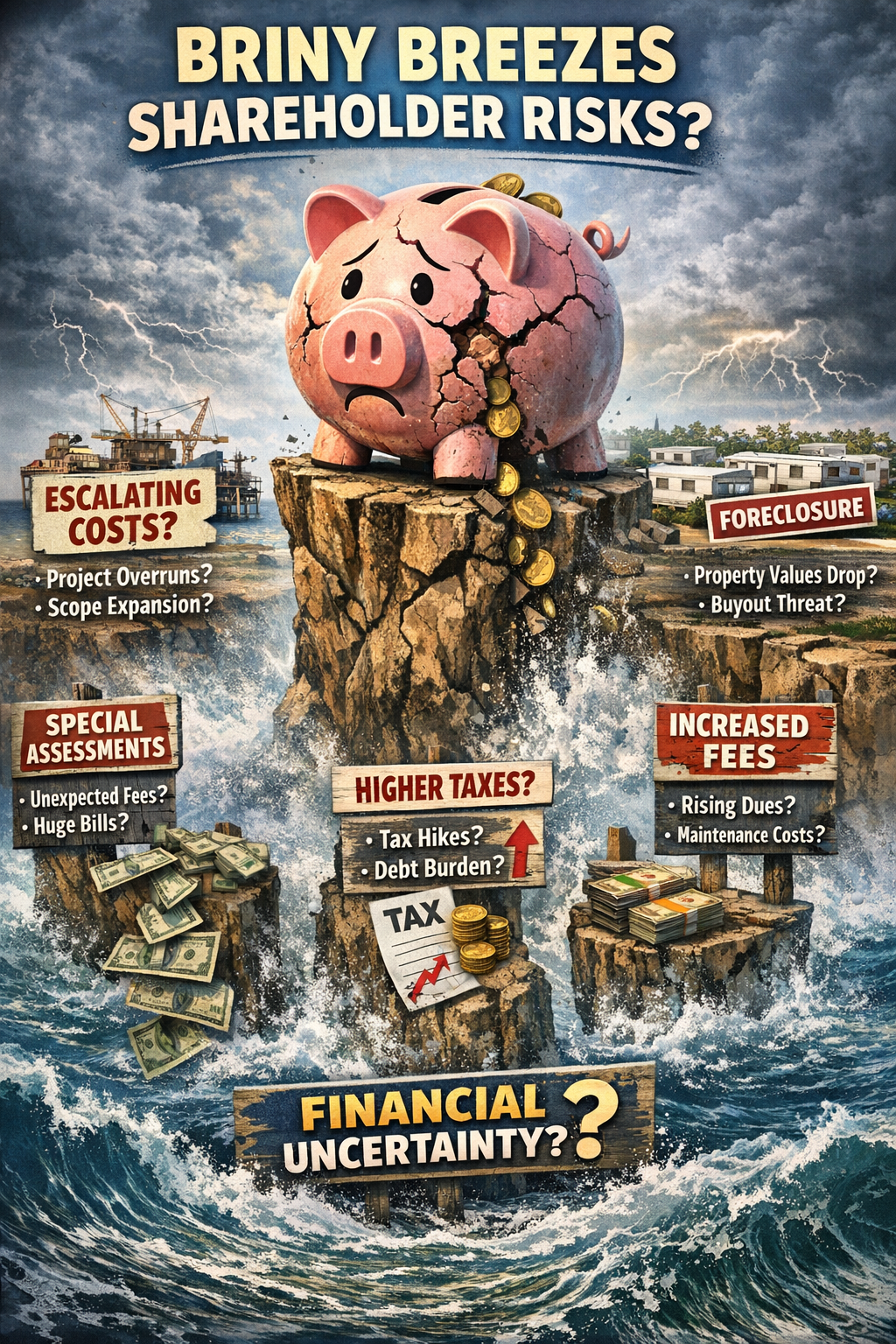 Multiple shareholders have publicly stated that cooperative reserve accounts — including those associated with seawalls — have historically been underfunded. While audited financial records would be required for a definitive determination, residents note that available reserve balances appear significantly lower than projected replacement costs for large-scale marine infrastructure.